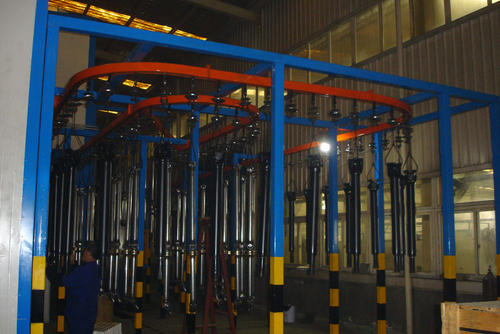 汽車傳動軸以細長筒狀件為主,外形較復雜,大多都是在組裝后,再進行防護裝飾性涂裝,組裝后的傳動軸內(nèi)有橡膠密封件,為防止橡膠件受熱老化,烘干溫度一般不得大于100℃。根據(jù)傳動軸產(chǎn)品的涂層質(zhì)量要求,結(jié)合客戶的實際要求,選用無苯低溫固化丙烯酸涂料或黑氨基烘烤磁漆,底漆則采用鐵紅環(huán)氧酯底漆。